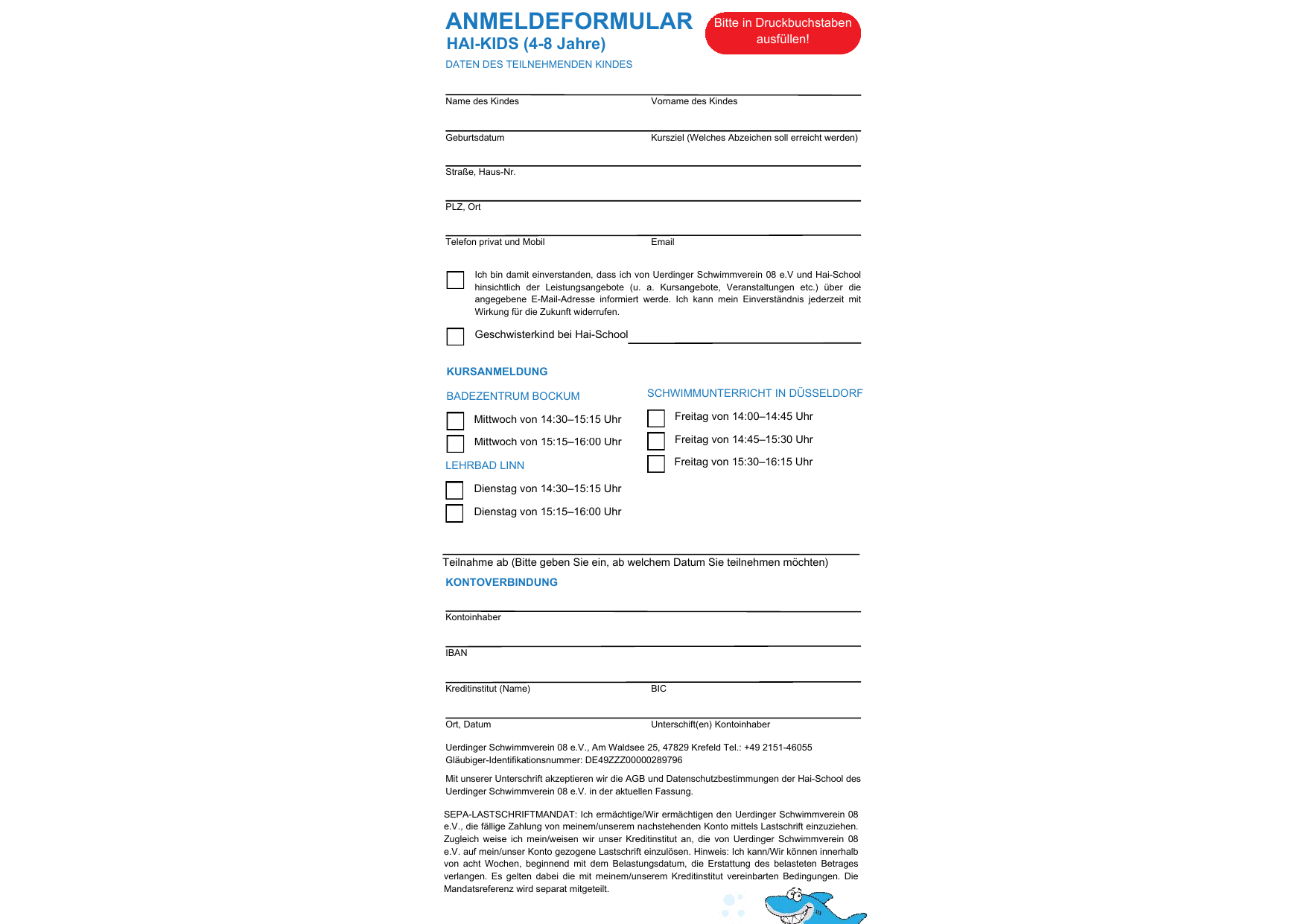 »Anmeldung Erweiterung Hai-Kids« ausfüllen