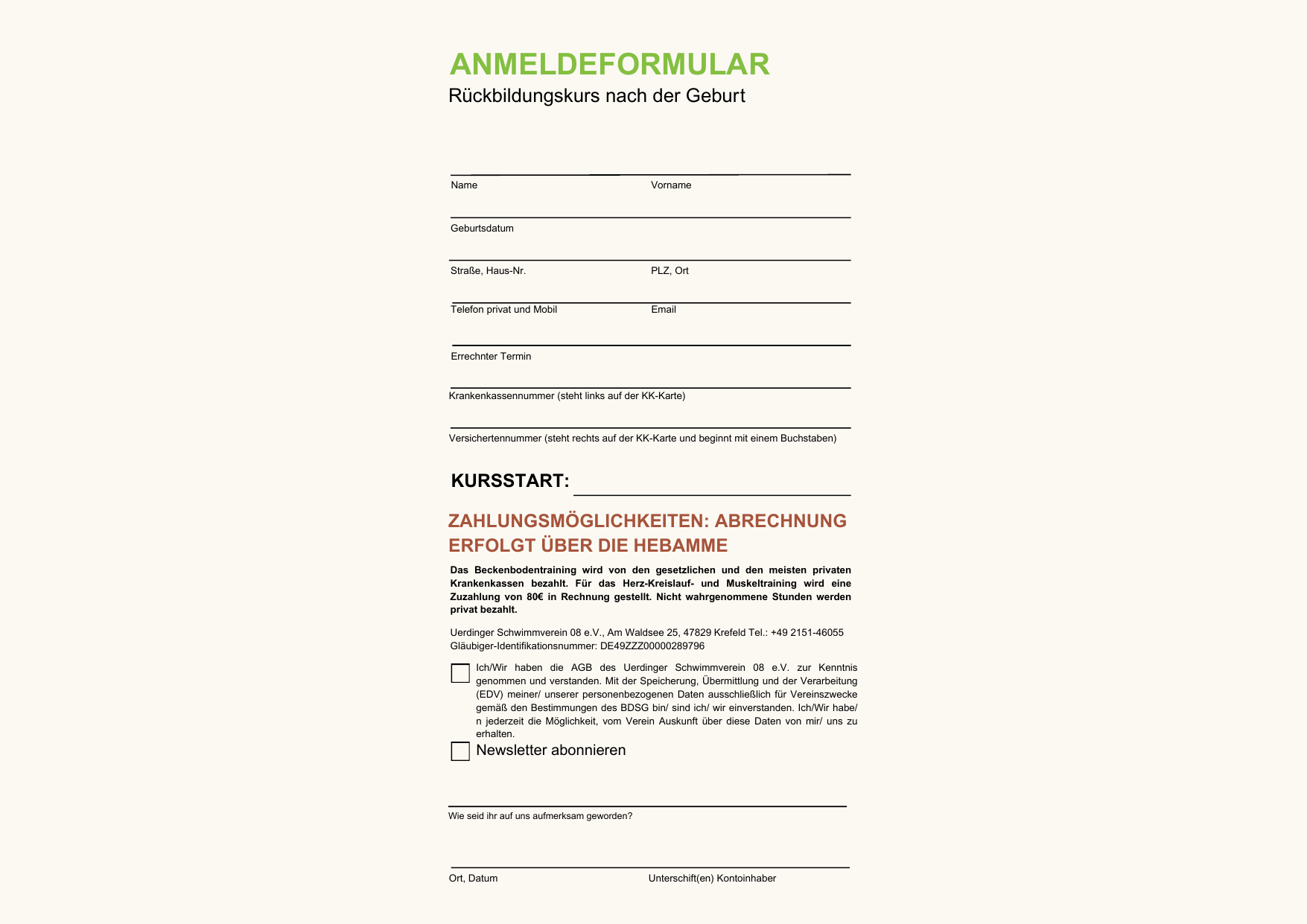 »Anmeldeformular Rückbildungskurs nach der Geburt« ausfüllen